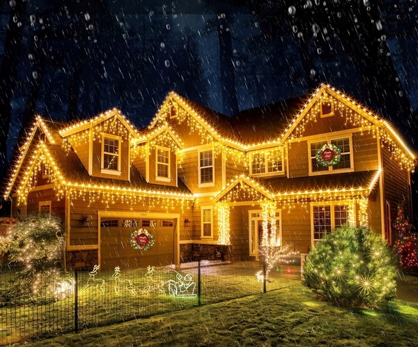 Внесите в свой дом волшебство Рождества с помощью светодиодной световой завесы GoGRIZO SOPLE 300 теплого белого цвета с эффектом FLASH.