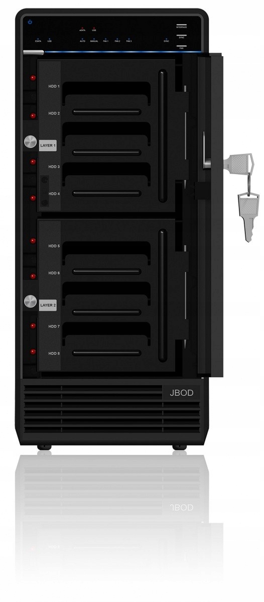 Внешний корпус для восьми 3,5-дюймовых накопителей SATA I/II/III в конфигурации JBOD (дисковый массив)