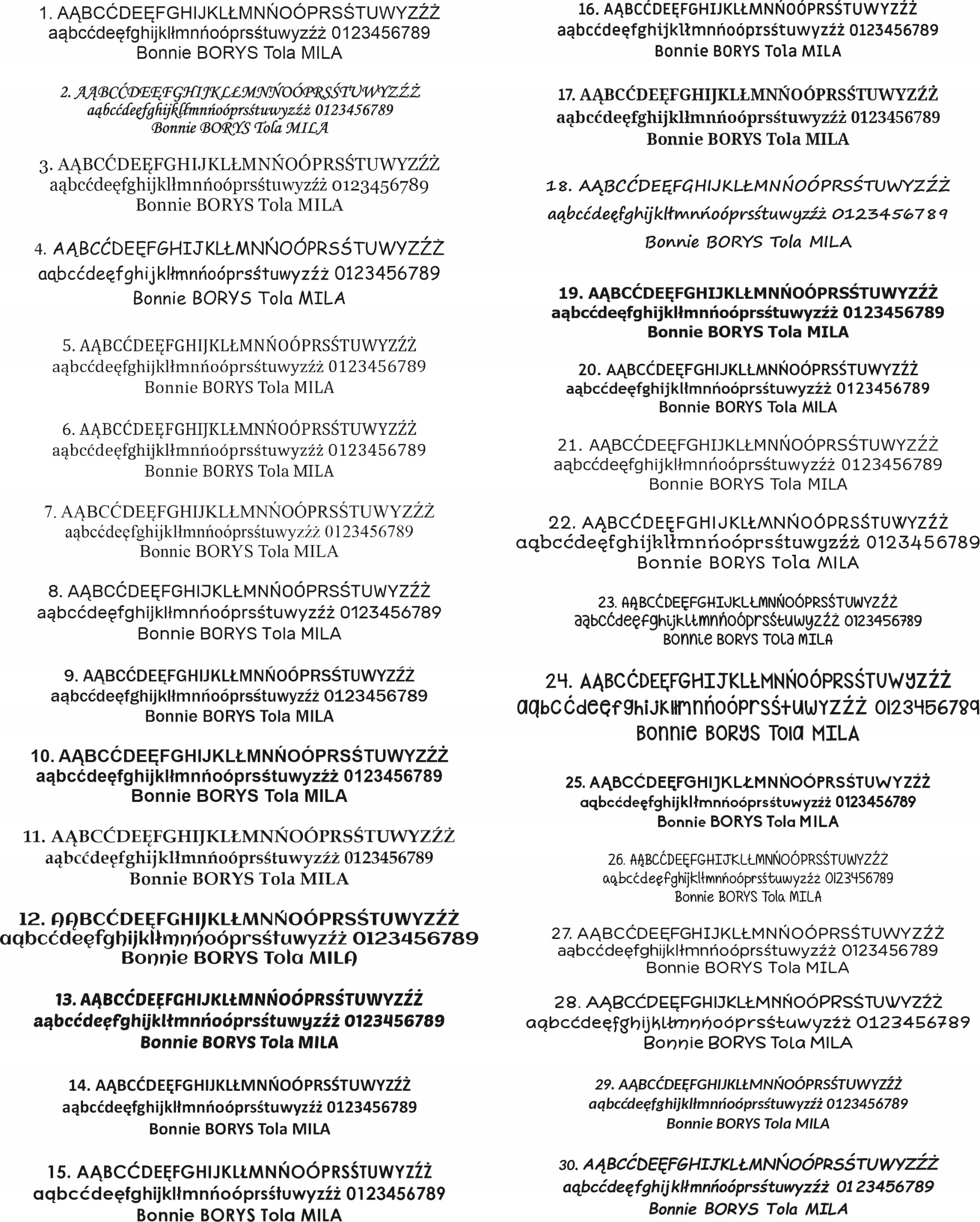- номер шрифта