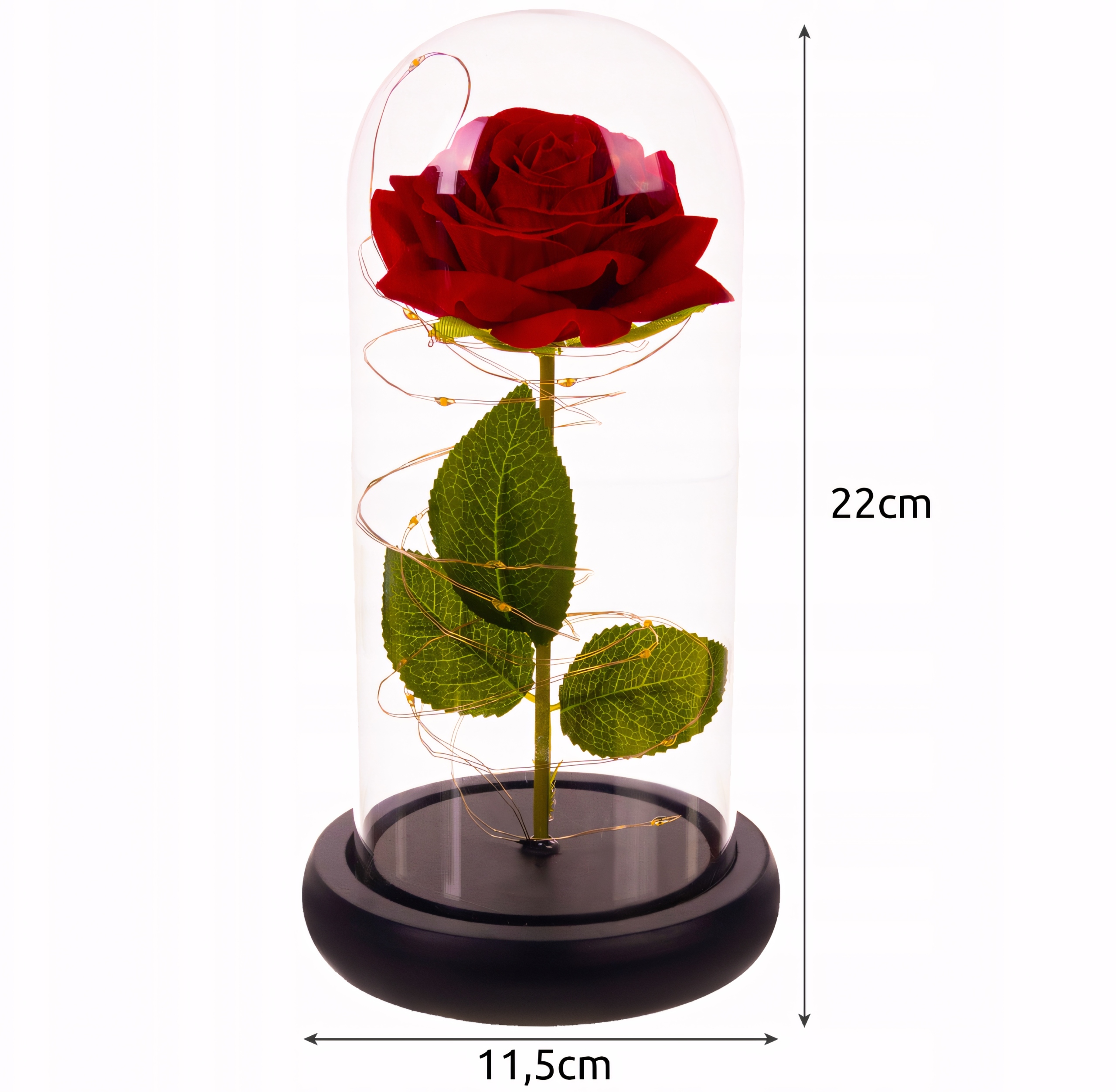 Технические характеристики вечной розы также заслуживают внимания. Он изготовлен из прочного стекла, пластика и оснащен тонким светодиодным проводом.