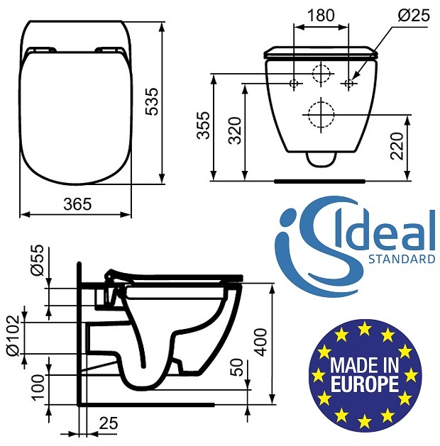 IDEAL STANDARD TESI — ПОДВЕСНОЙ УНИТАЗ БЕЗОБЕДНИКА + МЕДЛЕННО ЗАКРЫВАЮЩЕЕ СИДЕНЬЕ