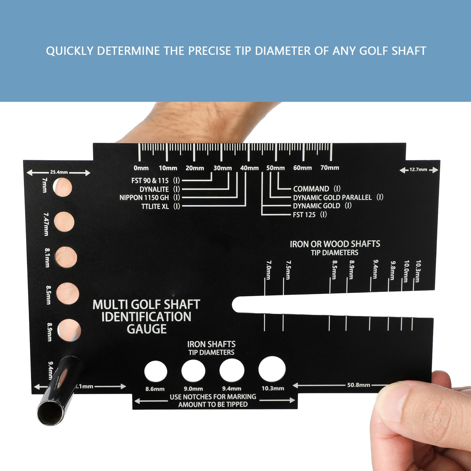 2. Быстрое измерение диаметра наконечника: эффективно определите точный диаметр наконечника любого стержня для гольфа, что упрощает выбор правильных компонентов для вашей индивидуальной конструкции клюшки.