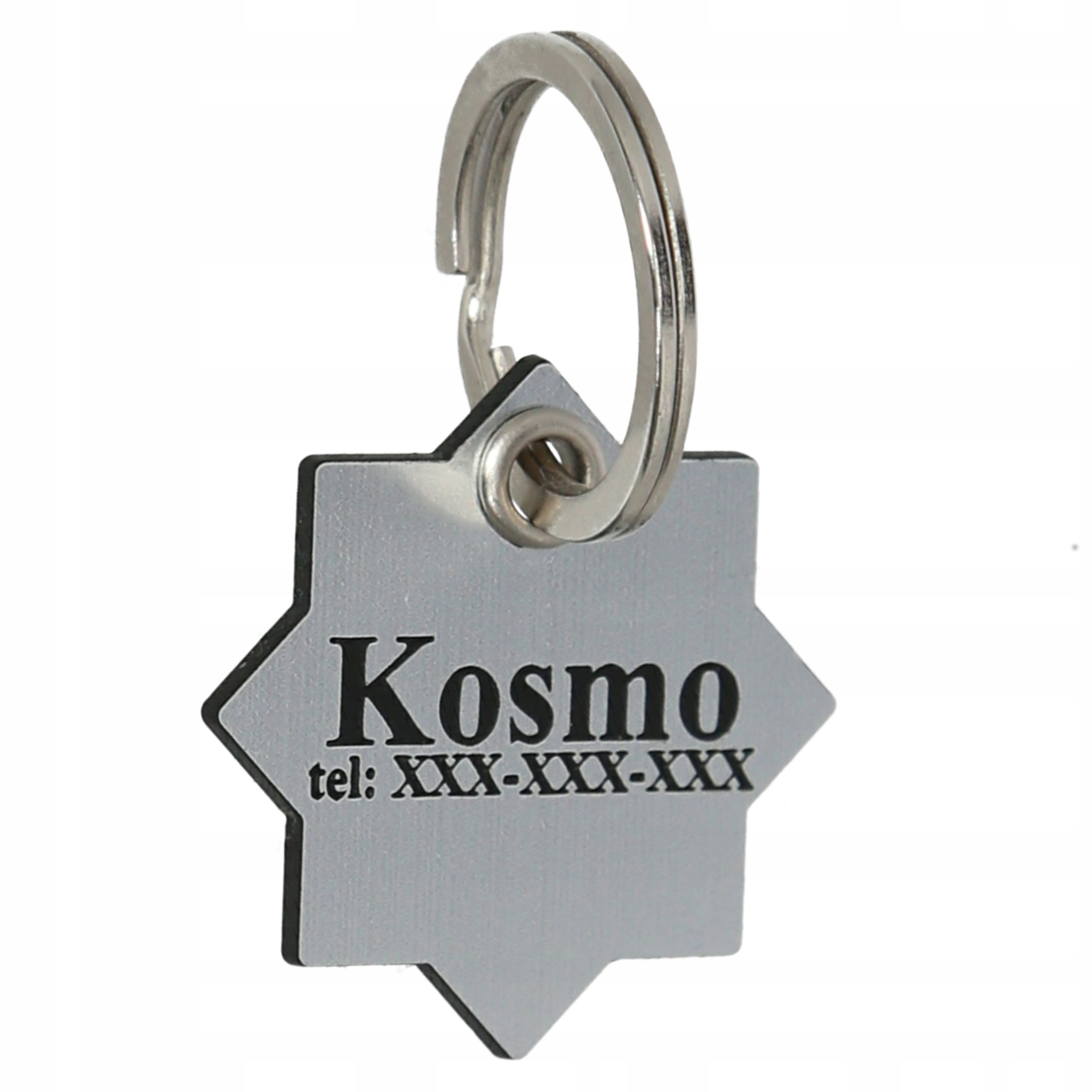Идентификатор для вашего питомца из ламината с гравировкой. Этот ламинат устойчив к погодным условиям (снег, дождь) и УФ-излучению. Адресат выполнен с помощью гравировального плоттера. Кроме того, каждая идентификационная бирка поставляется с металлическим кольцом для крепления к ошейнику (при доставке идентификационная бирка уже прикреплена к ошейнику)