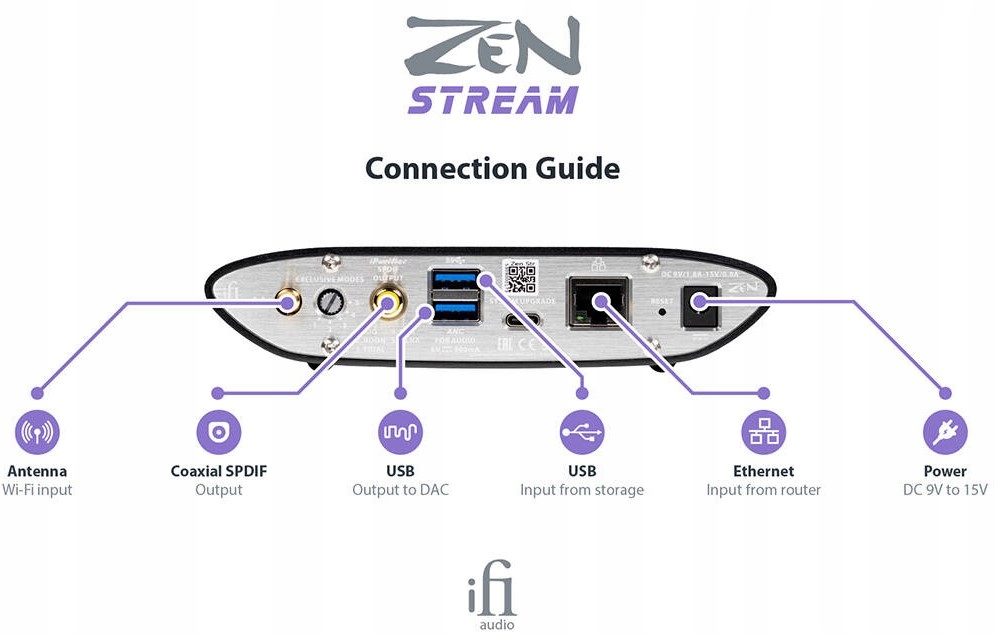 iFi Zen Stream может подключаться к вашей музыкальной коллекции или любимому потоковому сервису, включая Tidal Connect и Spotify Connect, сертифицированным DNLA приложениям, AirPlay, Roon Bridge, UPnP (включая напрямую подключаемые USB-накопители) и NAA (для использования с HQPlayer). Доступные варианты со временем будут расширяться.