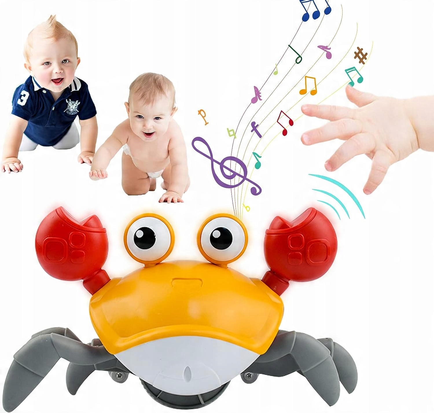 🦀 【Музыкальные игрушки со светом】- Эта игрушка очень интерактивный. Когда он движется, он воспроизводит динамичную музыку, тем самым улучшая внимание ребенка и поддерживая развитие его слуха. Светодиодные индикаторы в игрушке также мерцают, а свет очень мягкий, что более привлекательно для ребенка.