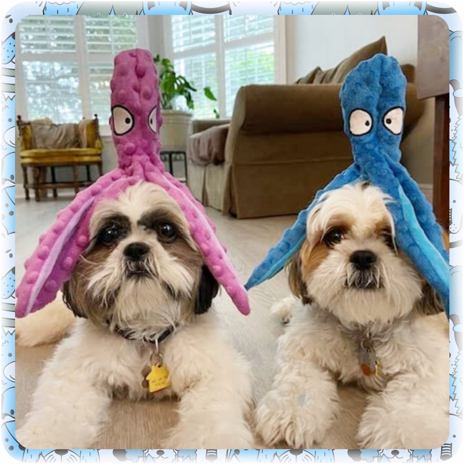 ☘ выберите идеального игрового компаньона для вашей собаки - голубой талисман осьминога b>, который впечатляет с мягкостью, мульти - Функциональность и стимулирующие звуки >