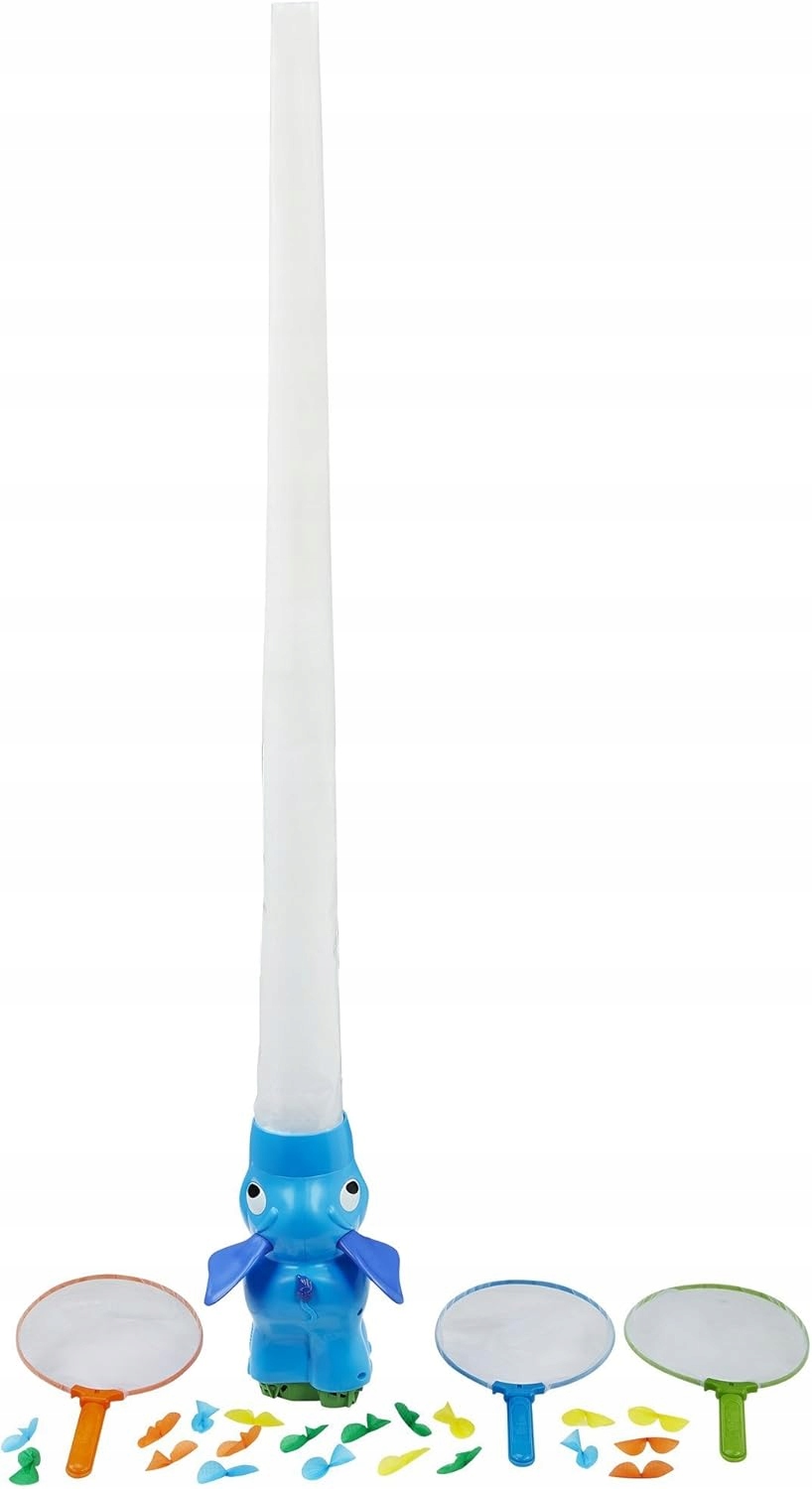 - 20 бабочек: дети должны поймать бабочек, вылетающих из 90-сантиметрового хобота слона. Победит тот, кто поймает больше бабочек! В комплект игры входят 20 разноцветных бабочек и 3 сачка для бабочек.