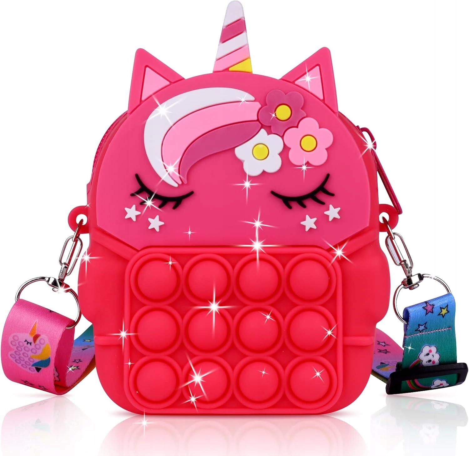 СУМКА НА ПЛЕЧО ЕДИНОРОГ FIDGET TOY СИЛИКОНОВАЯ ДЛЯ ДЕВОЧЕК КРАСНАЯ