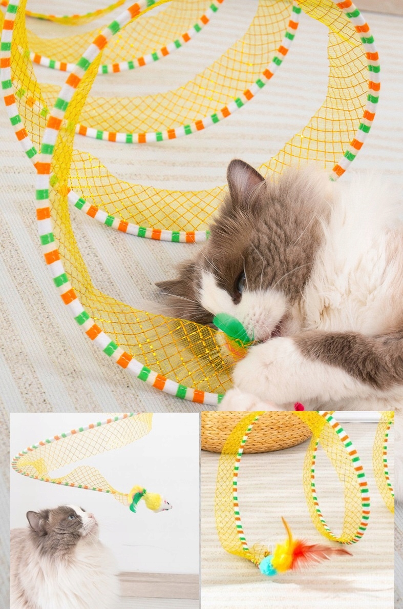 ✅Кроме того, туннель можно использовать как удочка для кошки – растяжение и сворачивание туннеля побудит кошку «охотиться» за прикрепленной мышью.