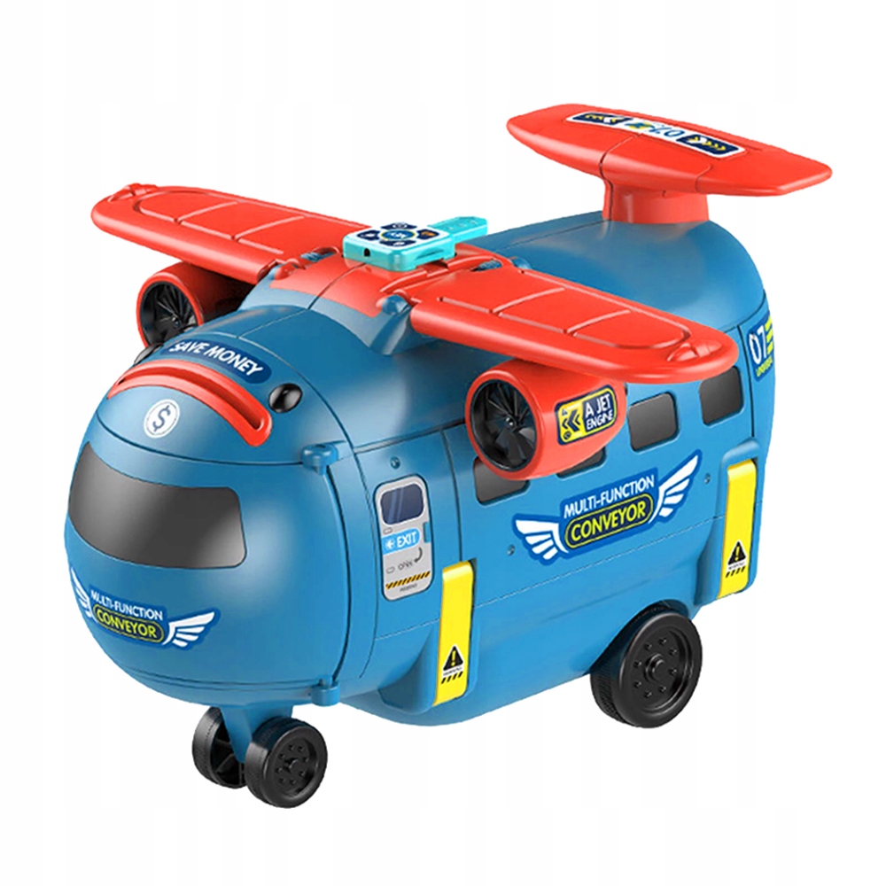 Дополнительно в передней части самолета есть прорезь, в которую можно кидать деньги, поскольку она служит копилкой. Чтобы сэкономить, просто разблокируйте запорный механизм ключом, входящим в комплект, и откройте отсек!
