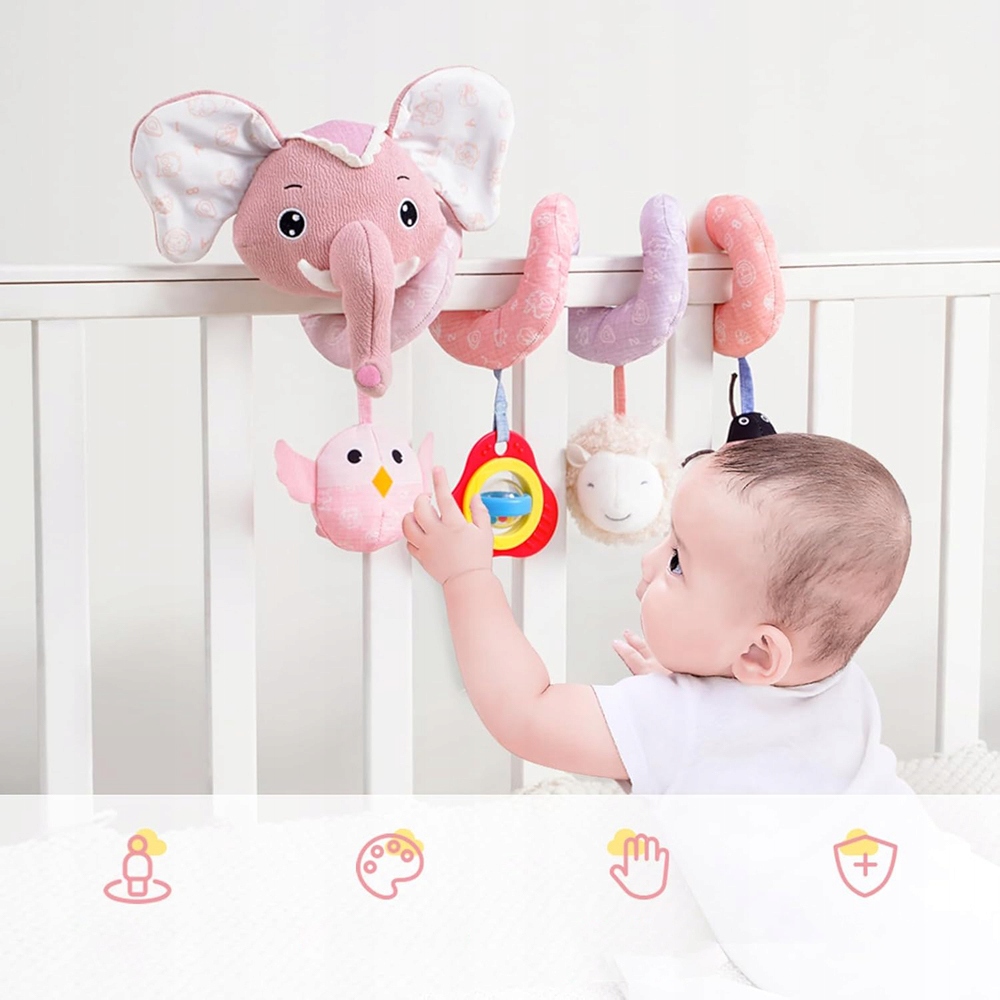 🌟КУЛОН «РОЗОВЫЙ СЛОН» ДЛЯ КОЛЯСКИ, кроватки, СИДЕНЬЯ - ИНТЕРАКТИВНАЯ СЕНСОРНАЯ ИГРУШКА С 4 АКСЕССУАРАМИ 🐘✨