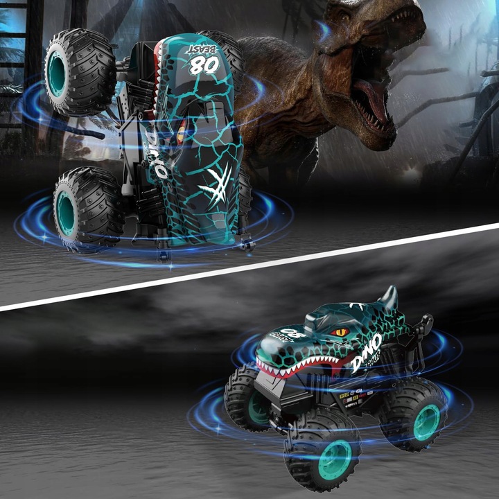 👾👾 Пульт дистанционного управления Monster Truck: Уникальный Monster Truck с дистанционным управлением имеет совершенно новую улучшенную танцевальную функцию, модную музыку, ритмичные огни и реалистичные формы динозавров, которые доставляют детям бесконечную радость и волнение во время игры. Многочисленные функции, объединенные в этом радиоуправляемом грузовике-монстре, делают его идеальным подарком для детей и обещают массу удовольствия.