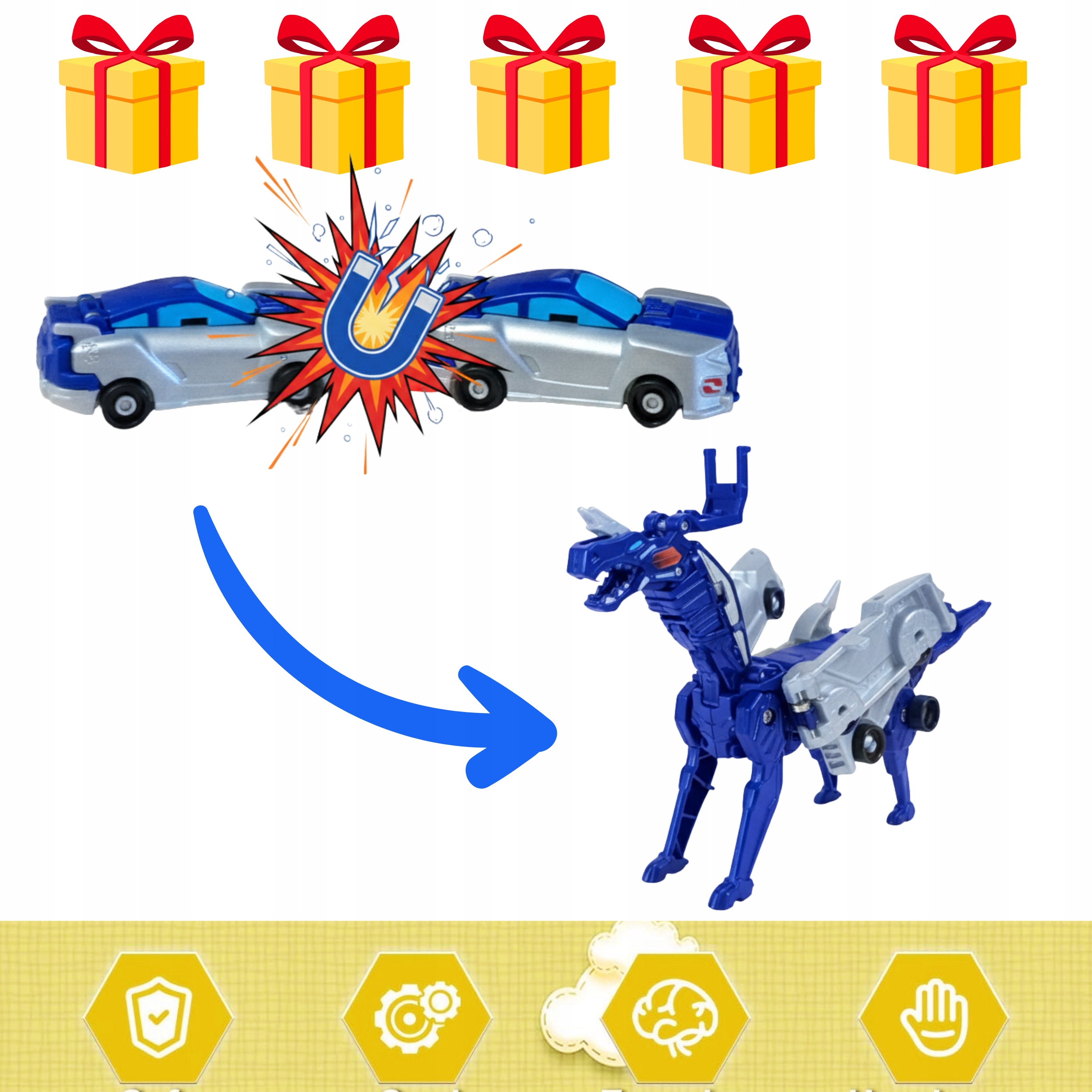 ⭐ Мини-версия Целых 2 машины, которые соединяются за секунду с помощью встроенного магнита, фактически создавая робота-лошадь,