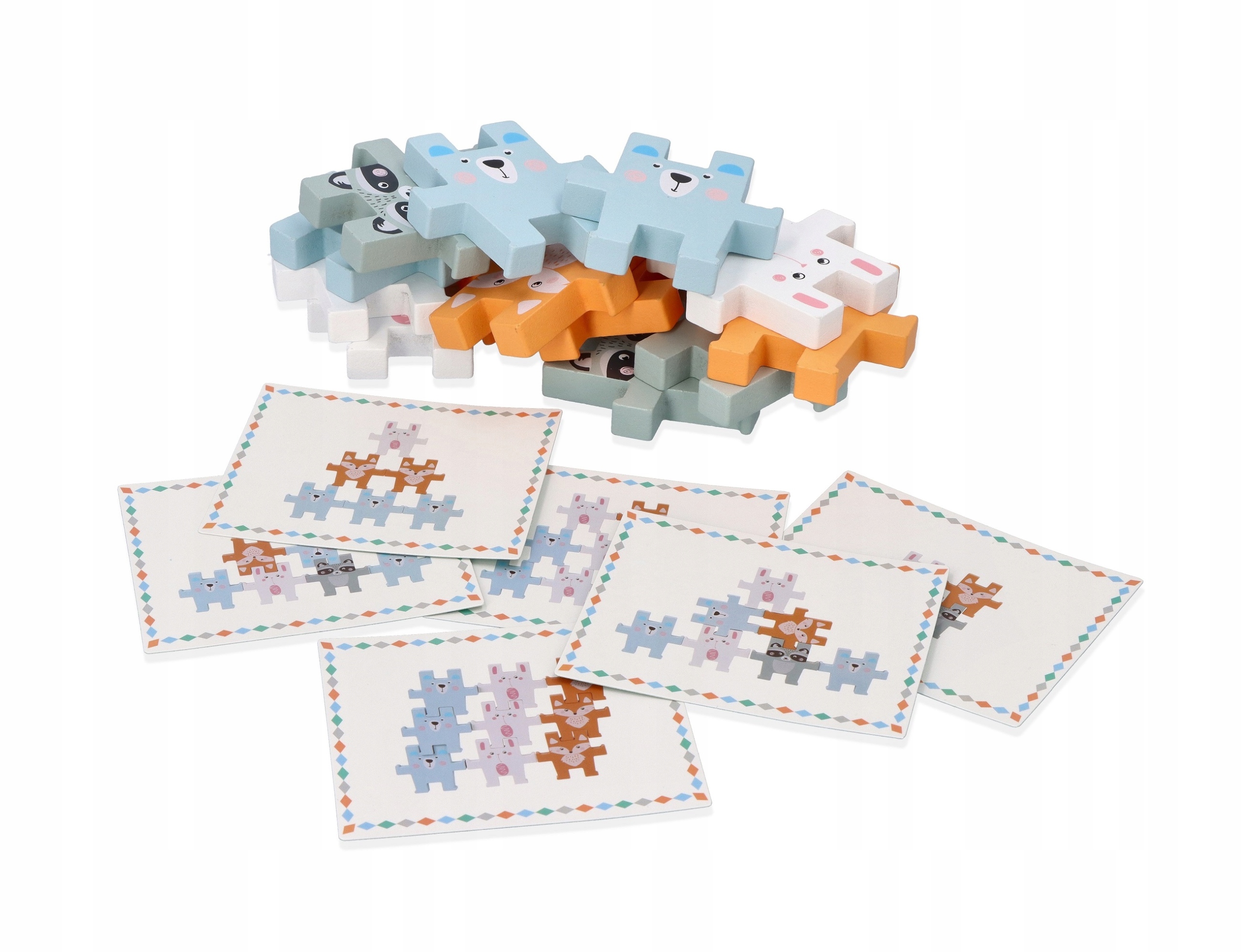 Интересная головоломка с лесными животными, с которыми решили поиграть вместе. Блоки животных спроектированы таким образом, что их можно располагать и соединять как по вертикали, так и по горизонтали, создавая новые фигуры и пирамиды.