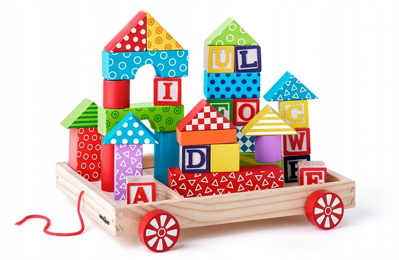 Деревянная коляска с кубиками доставит массу удовольствия каждому ребенку. В набор входят разноцветные блоки в форме прямоугольников, треугольников и цилиндров. Дополнительно в набор входят кубические блоки с буквами, цифрами и символами, чтобы ребенок мог совместить развлечение с приятным познанием мира. Все кубики помещаются на деревянной тележке с прикрепленной красной верёвкой, что облегчает транспортировку и вызывает улыбку на лице ребёнка :)