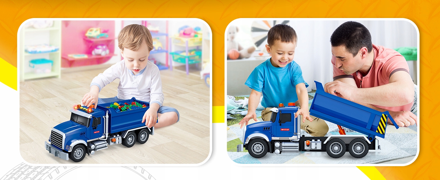Дети могут использовать этот большой самосвал для транспортировки песка и других игрушек. Он идеально подходит для ношения игрушек дома и снаружи, для бега и тащика песка на пляже и игры во дворе. Это улучшает координацию глаз у мальчиков и девочек, развивает моторные навыки, креативность, роли и воображение. Эта активная форма веселья будет стимулировать творчество и поддерживать развитие вашего ребенка.