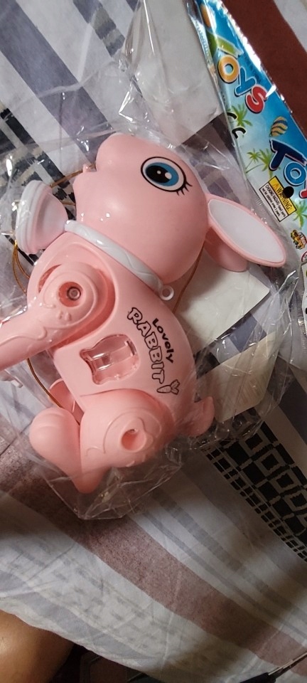 Іграшковий кролик грає в стрибаючого зайця. Світлодіодний кролик, що світиться на повідку цілодобово
