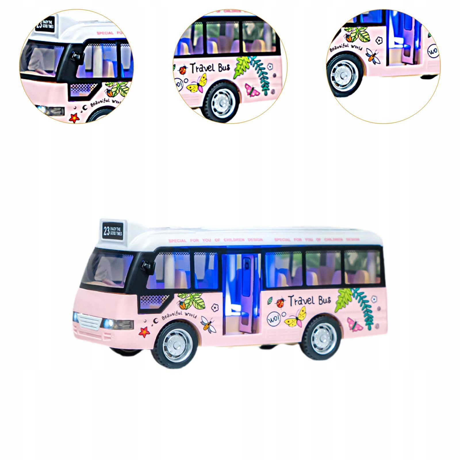 Городской автобус Образовательный игрушечный автобус со звуками и огнями для мальчиков и девочек Розовый подарок
