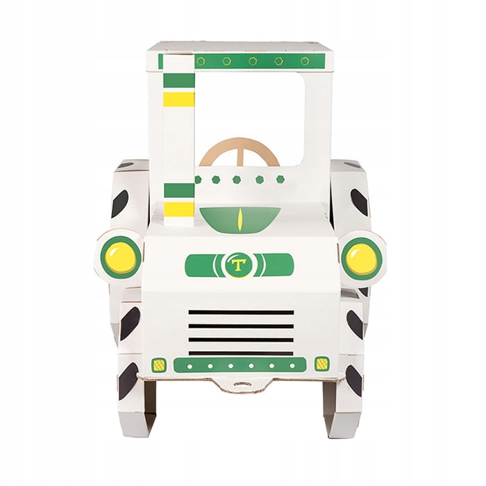 Тракторы – одни из самых продаваемых автомобилей среди детей. Мальчики любят машинки, в том числе и тракторы – они смогут въехать в эту! Картонная игрушка «Тракторрр» изготовлена из 5-слойного гофрированного картона белого цвета. Соберите и украсьте его вместе с ребенком (в наборе есть наклейки)