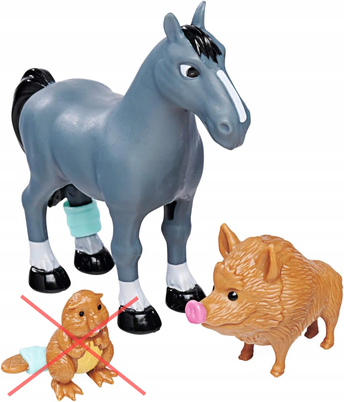 Прикрепленные компоненты: фигура Лиззи для игры, три животных (лошадь, бобр, кабан), столик для лечения, лебедка, фара, выдвижной шкаф и дополнительные игровые аксессуары показывают больше