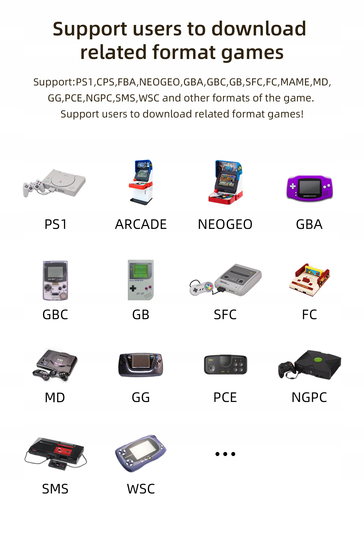 ✅ Поддержка игр: PS1, CPS, FBA, NEOGEO, GBA, GBC, GB, SFC, FC, MAME, MD, для GG , PCE, NGPC, SMS, WSC и другие