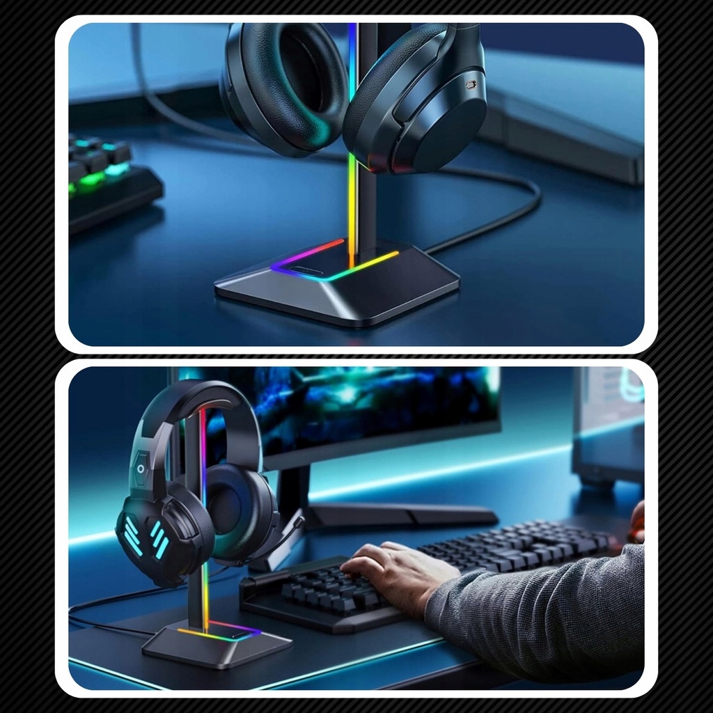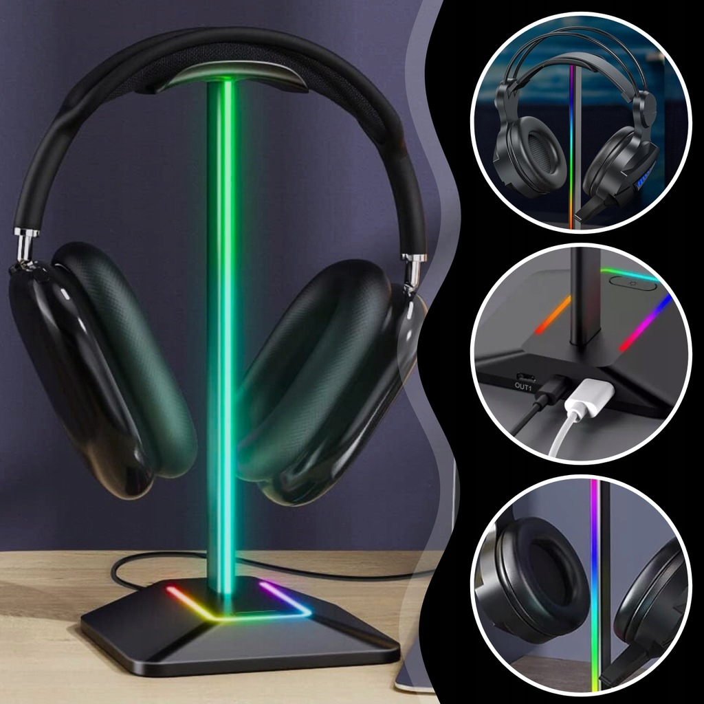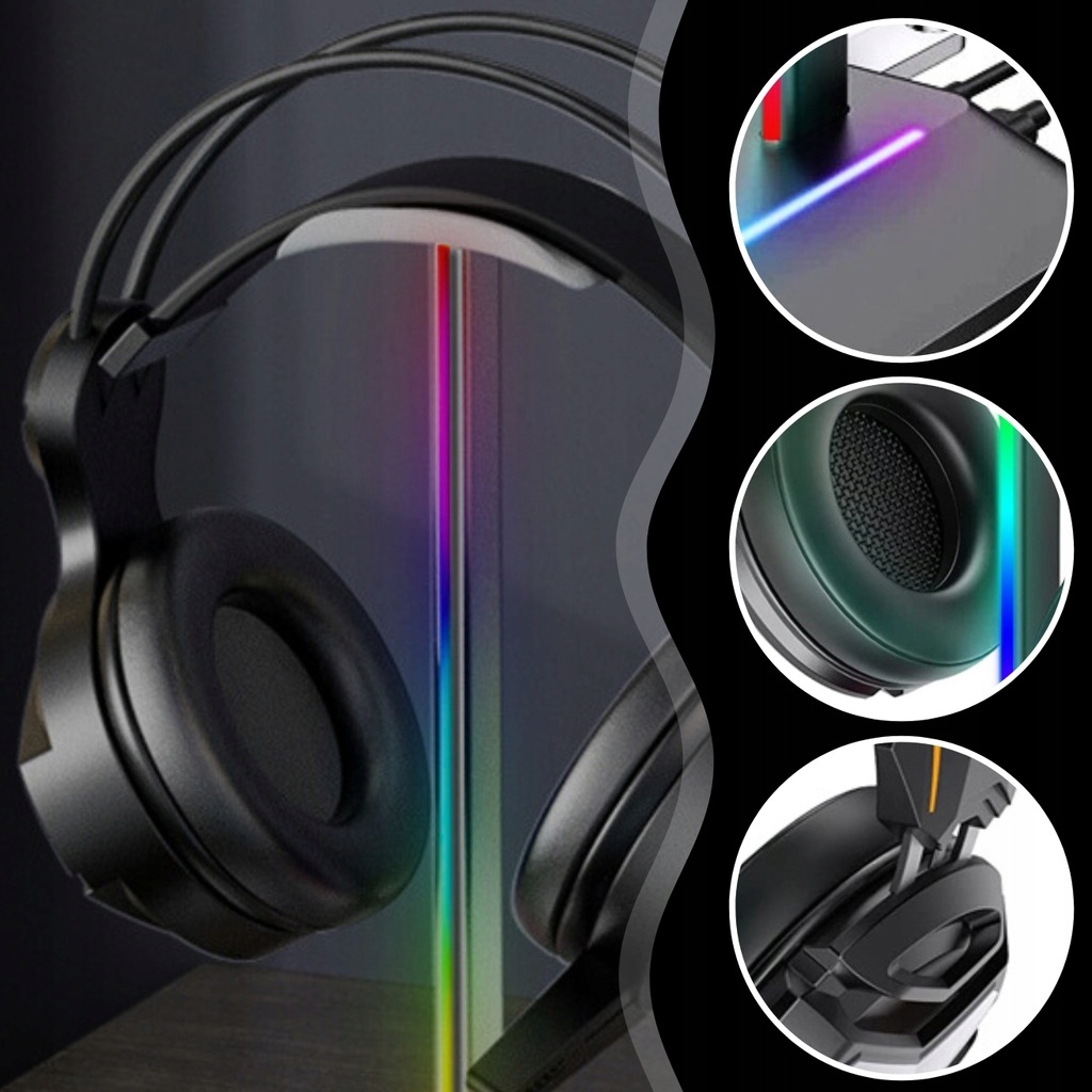 ПОДСТАВКА ДЛЯ ИГРОВЫХ НАУШНИКОВ СВЕТОДИОДНАЯ ПОДСВЕТКА RGB РУЧКА USB-ХАБОР