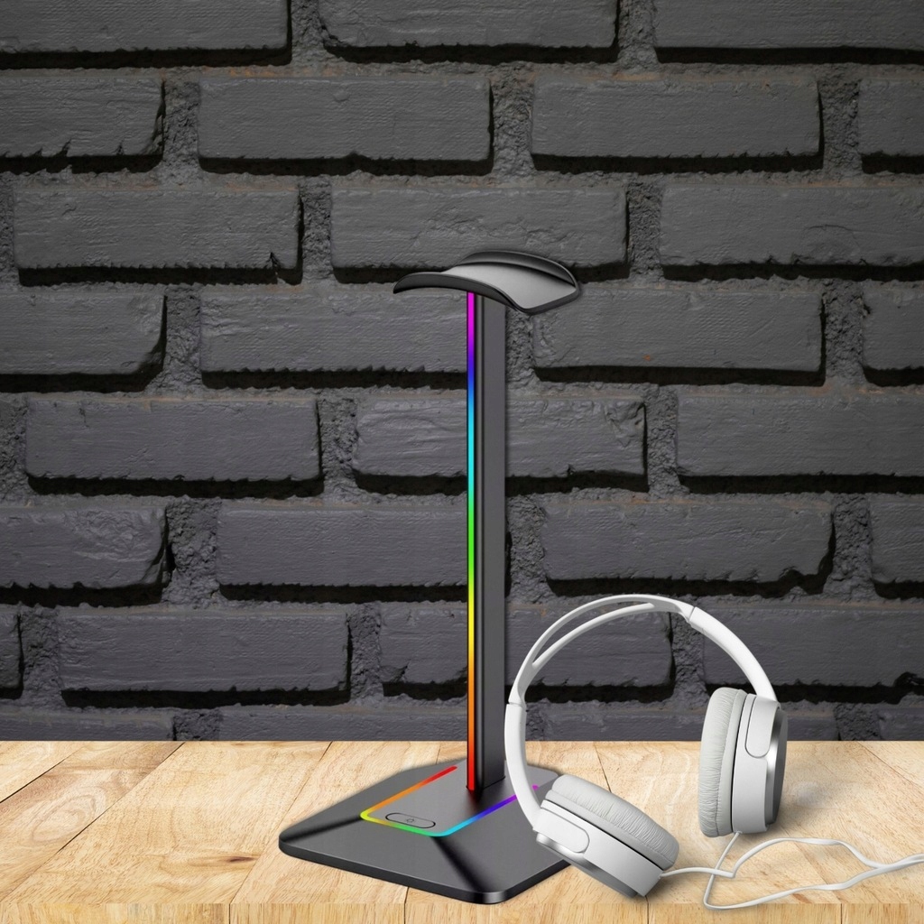 ПОДСТАВКА ДЛЯ ИГРОВЫХ НАУШНИКОВ СВЕТОДИОДНОЙ RGB ПОДСВЕТКОЙ РУЧКА USB-ХАБА