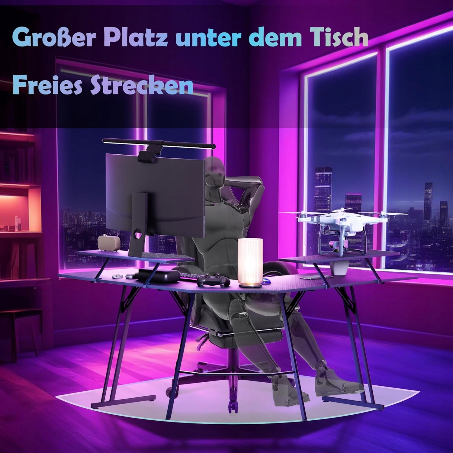 Инновационный дизайн этого L -образного стола максимизирует использование углового пространства и в то же время создает Бесплатный центр комнаты. Это означает большую свободу движения и лучшее использование пространства, идеальное решение для концентрированной работы или интенсивных игр. Наслаждайтесь заказанным и открытым пространством, которое сделает ваше рабочее место или игру не только функциональной, но и приятным