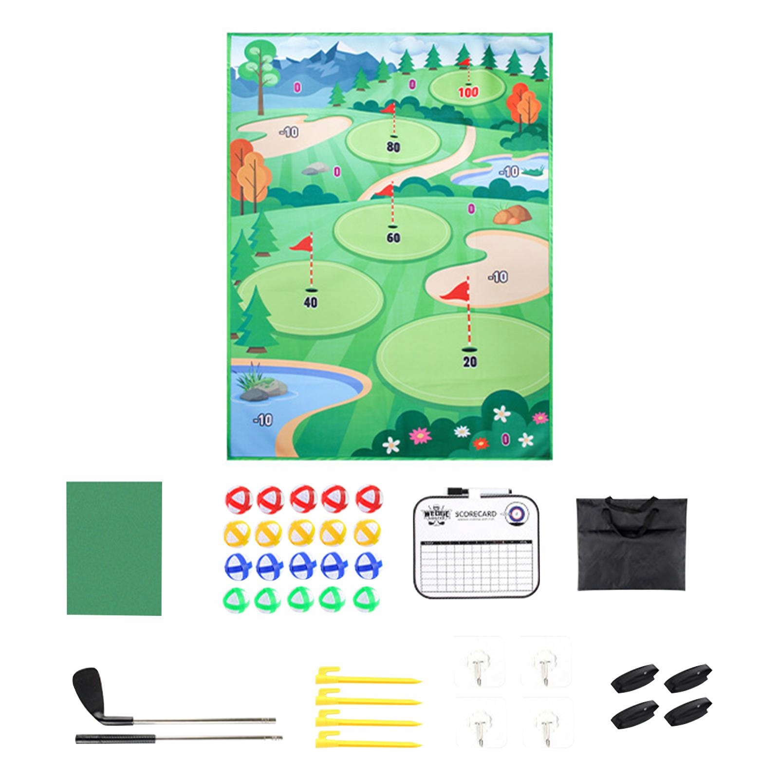 [Коврик для чипсов и липкие мячи]: набор ковриков для гольфа — отличная игра в гольф для игры в помещении и на открытом воздухе. В комплект входит большой коврик для гольфа, 20 липких мячей, 1 табло, 1 клюшка для гольфа, 4 колышка, 4 настенных крючка и 1 сумка для хранения.