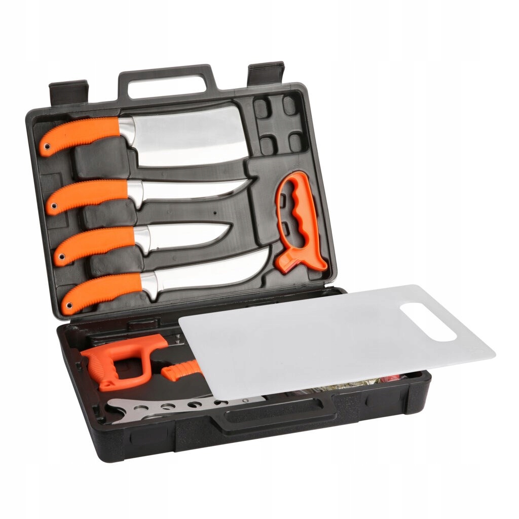 Этот прочный набор ножей включает в себя все необходимое для снятия шкур с вашей дичи! Вы можете выбрать один из нескольких ножей, а также разделочную доску, крючок для мяса и другие практичные аксессуары. Ножи нельзя мыть в посудомоечной машине.
