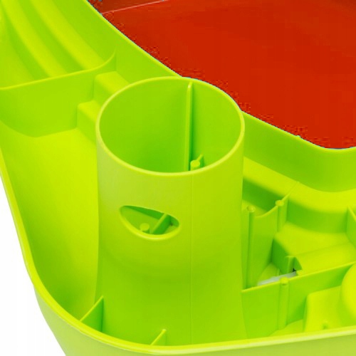 В разложенном виде – поощряет активную игру с песком и водой, а в закрытом – может использоваться как удобная панель для ручной работы, рисования, раскрашивания.
