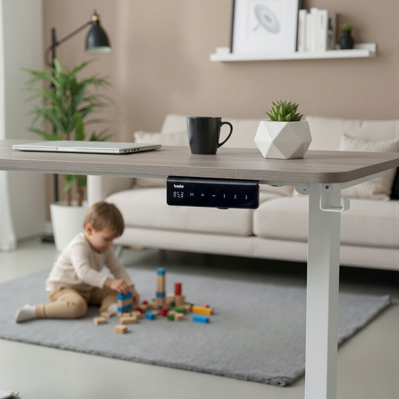 Электрическая регулировка высоты, основанная на эффективном единственном двигателе, позволяет плавно переключаться между работой сидя и стоя. Механизм работает исключительно тихо - до 50 дБ, благодаря чему стол не отвлекает во время работы.