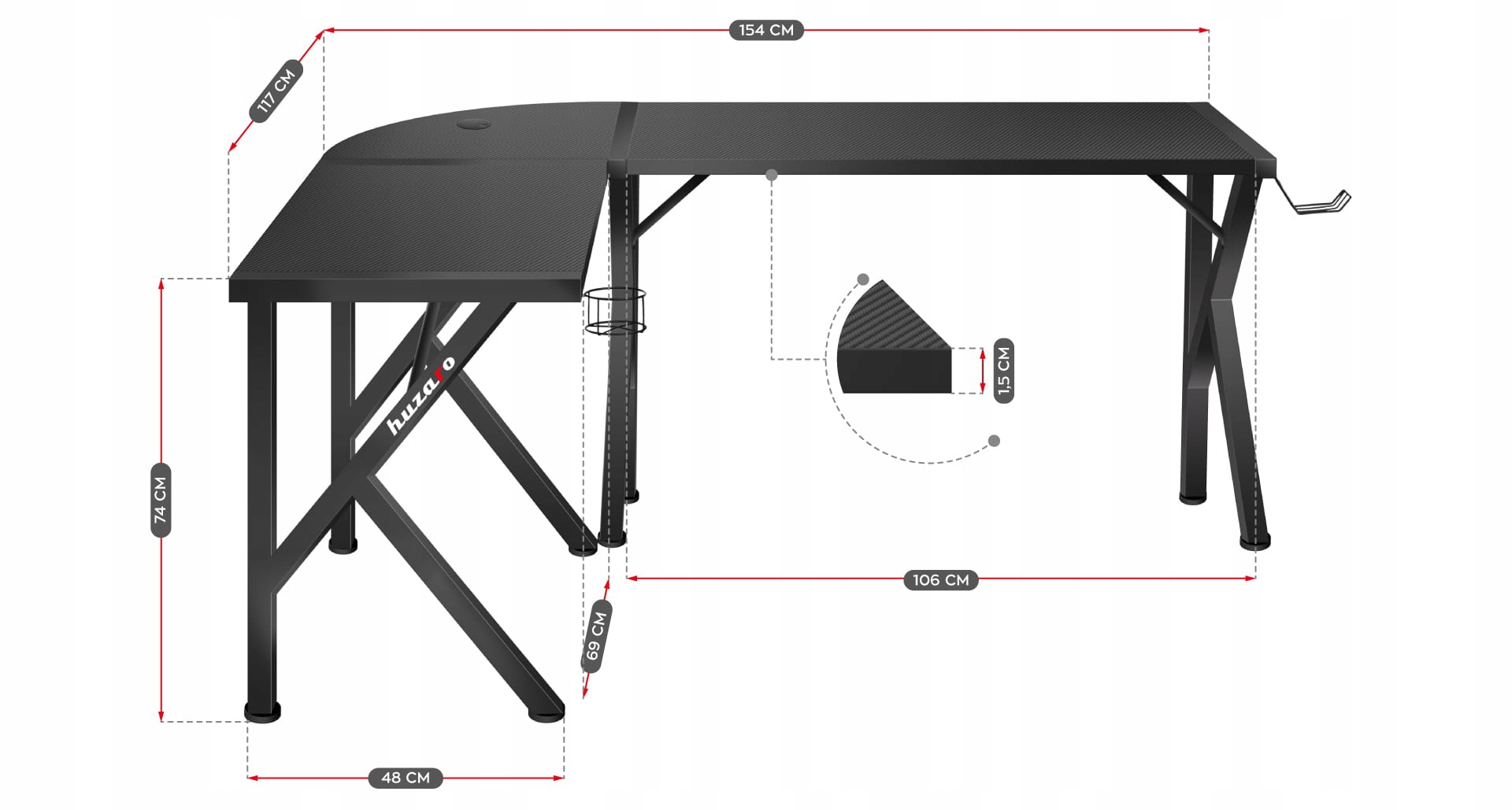 ІГРОВИЙ СТІЛ КОМП'ЮТЕРНИЙ КУТОВИЙ ПРОГРАВНИК HUZARO