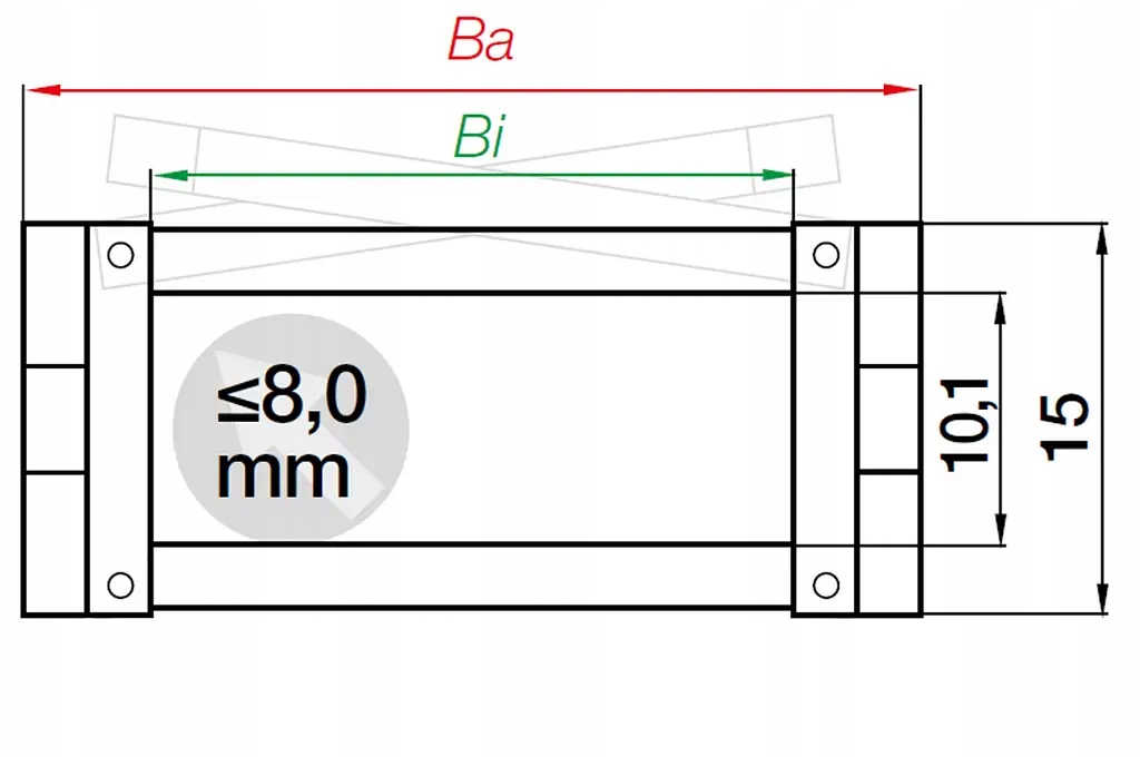 - Внутренняя ширина Bi, 10 мм