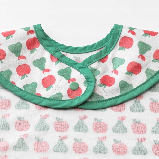 В переднем кармане собираются крошки, а нагрудник можно легко очистить с помощью быстрого полоскания или машинной стирки.