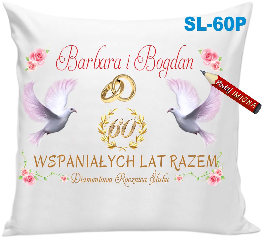 Подушка с именами 60 Шестидесятая годовщина свадьбы