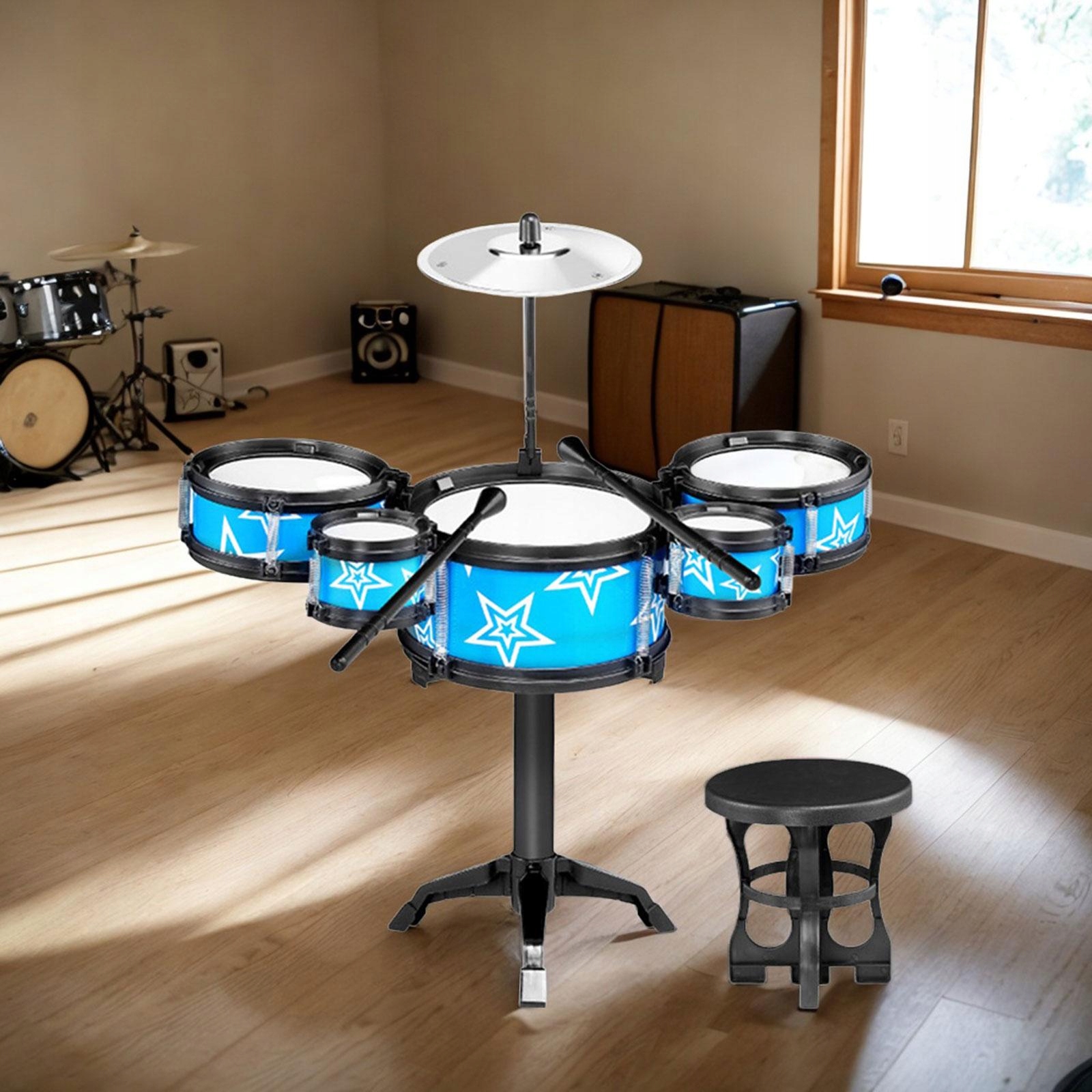 Детские игрушки-барабаны, детские барабанные установки, рождественские подарки для мальчиков, синие со стулом