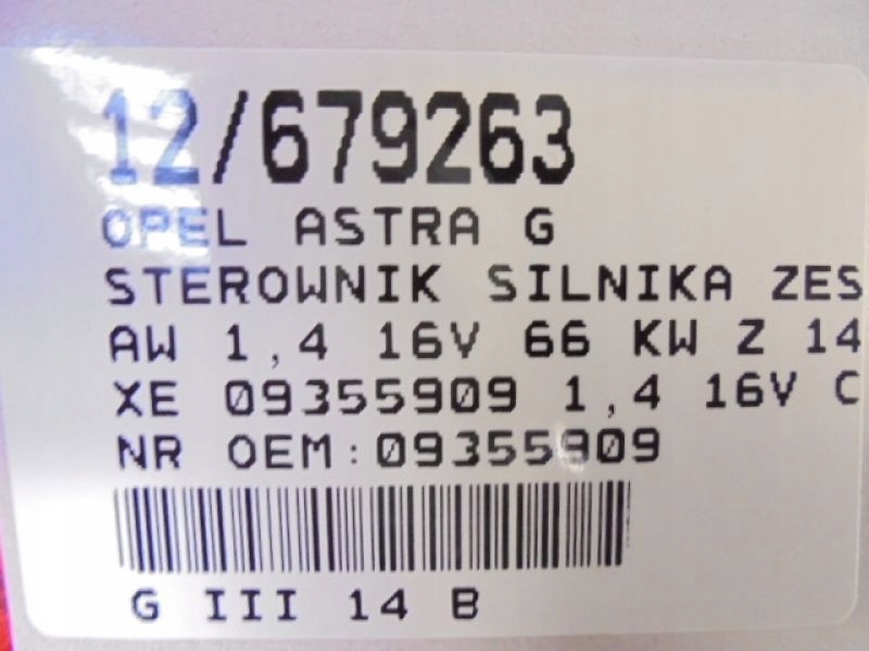 IMMO KOMPUTER 09355909 OPEL ASTRA II G 1.4 16V 00R