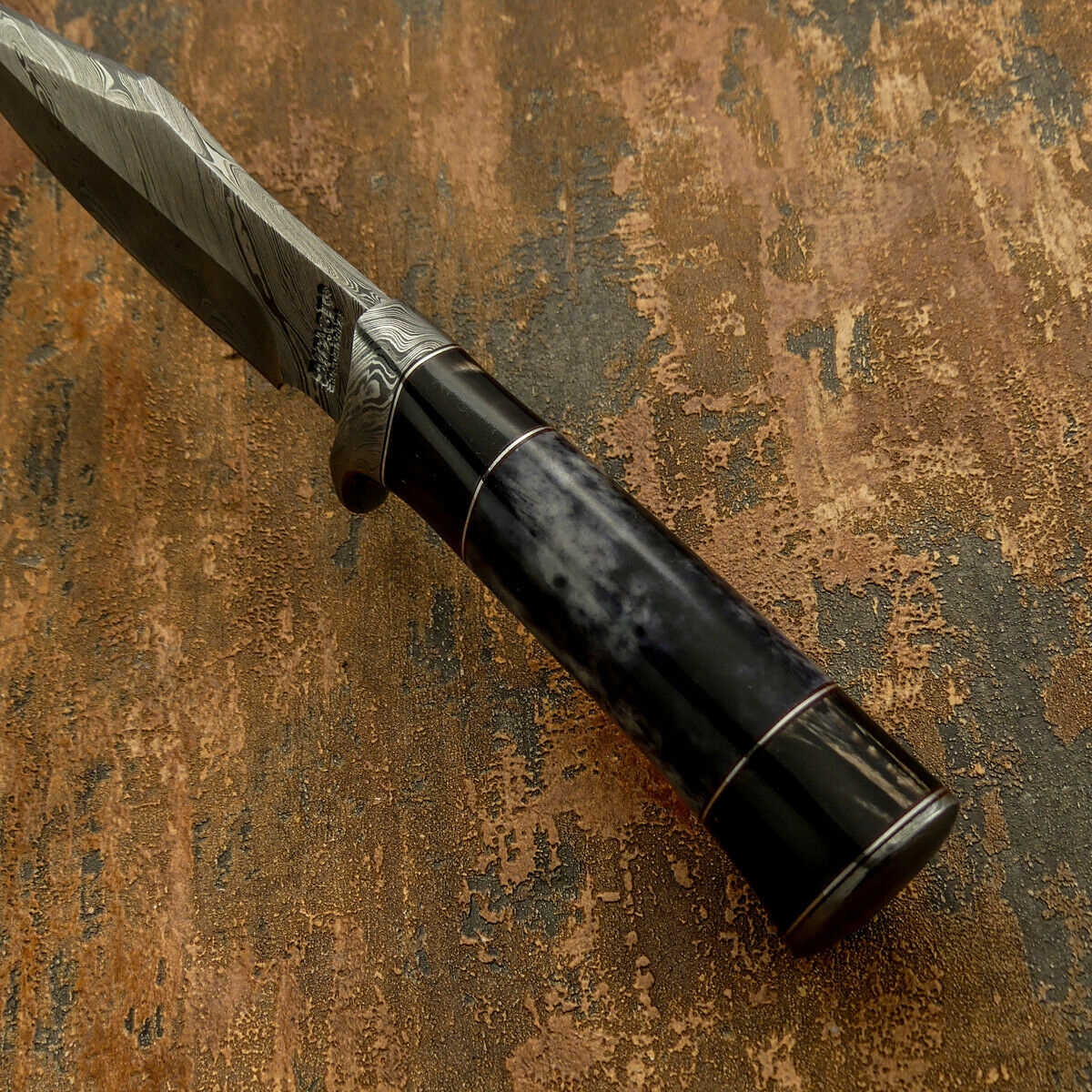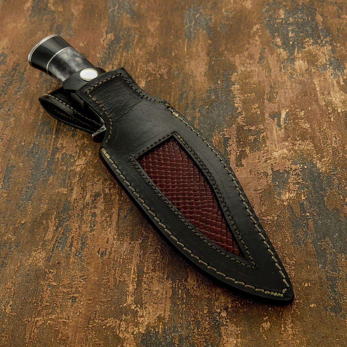 Рукоять: бычий рог, крашеная верблюжья кость, стальные проставки,