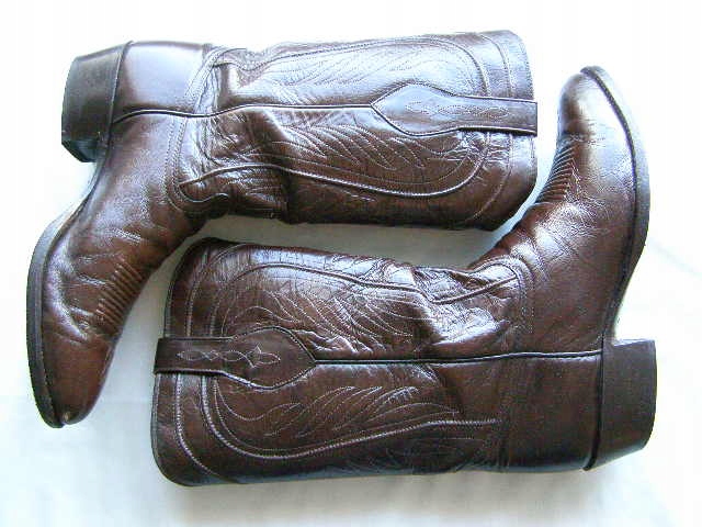 КОВБУКОВЫЕ БОТИНКИ ИЗГОТОВЛЕНЫ ИЗ ЛУЧШЕЙ ОТДЕЛКИ КОВБОЙСКОЙ КОЖИ, КОРИЧНЕВОГО, С КОЖАНОЙ ПОДОШВОЙ, ПРИКРЕПЛЕННОЙ К ВЕРХУ МЕТОДОМ ГУДИЕРА. ВНУТРИ КОЖАНАЯ СТЕЛКА И ПОДКЛАДКА. НАТОЖЕНЫ КОВБОЙСКИЕ БОТИНКИ. ВЫСОЧАЙШЕЕ КАЧЕСТВО КОЖИ И РУЧНАЯ РАБОТА.