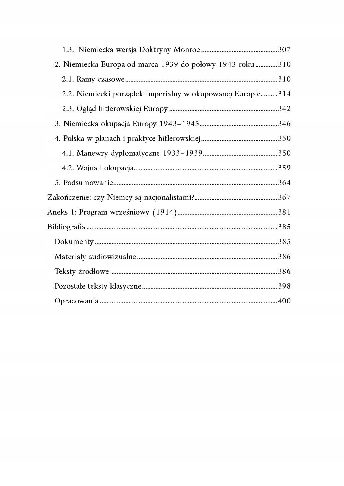 Цель этой книги — показать, что в 1871–1945 годах Германией двигал не какой-либо национализм, то есть желание иметь свое собственное суверенное национальное государство с национальными границами, а желание построить империя, охватывающая весь европейский континент, причем Германия является так называемой имперской нацией, то есть осуществляющей лидерство над другими народами (...) Цель этой книги — продемонстрировать, что Германия в 1914 и 1939 годах не руководилась никем. национализм, который конфликтовал с национализмом других наций. Немцы хотели построить свою собственную империю в Европе, рассматривая весь наш континент как территорию, завоеванную в колониальном стиле. Националистами были граждане национальных государств, которые оказывали им активное вооруженное сопротивление. планы, не желая быть завоеванным и порабощенным империей, чтобы стать зоной эксплуатации, чтобы Берлин мог конкурировать с другими империями, чтобы бороться за первенство над миром». - фрагмент Введения
