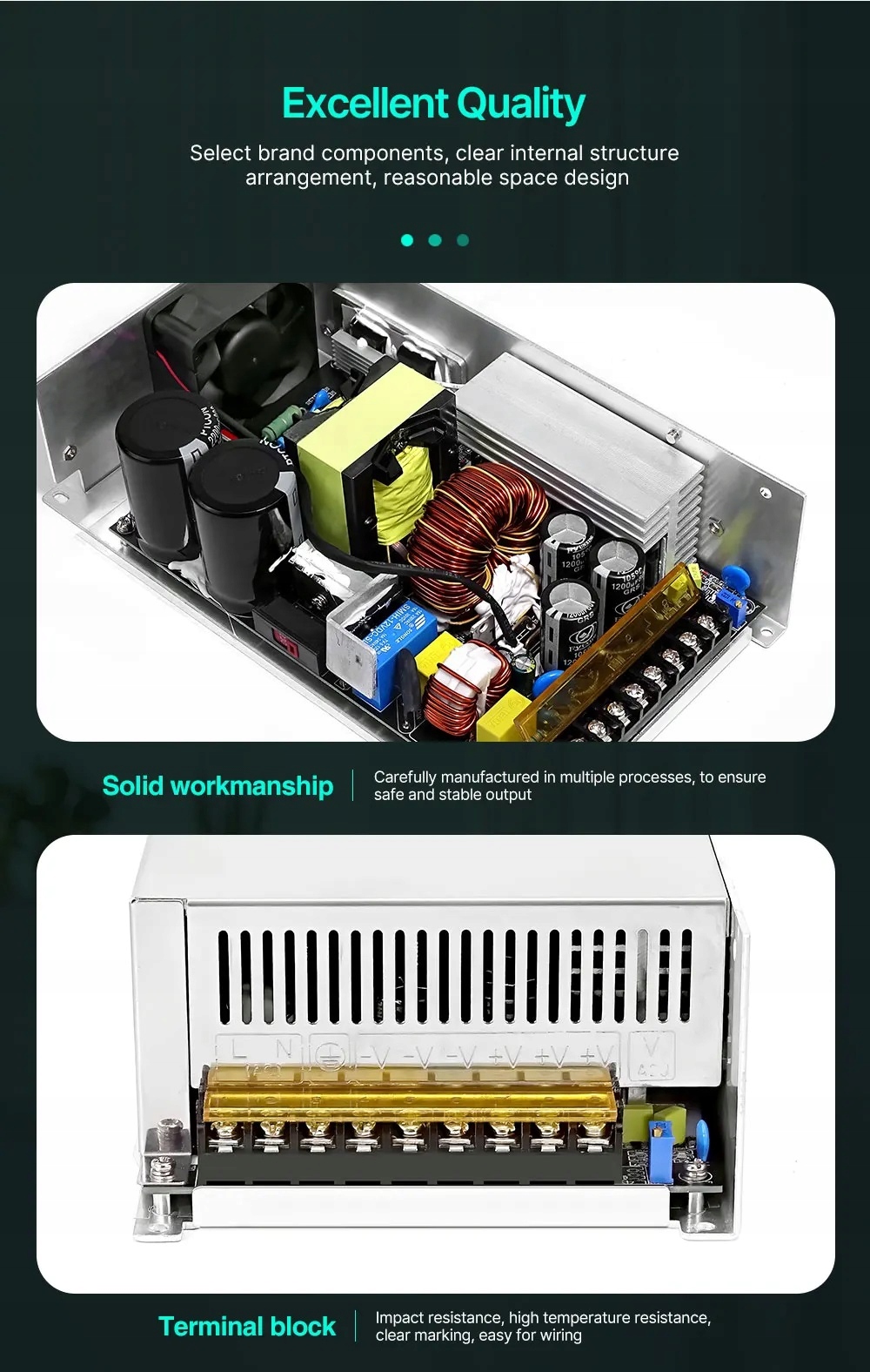 РД-1500-68 оснащен многочисленными защитами, в том числе от перенапряжения, перегрузки, короткого замыкания и перегрева, что защищает как источник питания, так и подключенные устройства от повреждений. Кроме того, блок питания имеет встроенный охлаждающий вентилятор и предохранитель, что обеспечивает эффективное охлаждение и дополнительный уровень безопасности. Благодаря потенциометру для точной регулировки выходного напряжения и переключателю напряжения питания 110 В/230 В пользователь может легко настроить источник питания в соответствии со своими потребностями. Винтовые соединители с дополнительной защитной крышкой облегчают прикручивание кабелей, обеспечивая прочное и безопасное соединение. Блок питания РД-1500-68 имеет компактные размеры 242 х 125 х 65 мм и небольшой вес 1,61 кг, что упрощает установку и переноску и идеально подходит как для профессионального применения, так и для любительских проектов в области электроники.