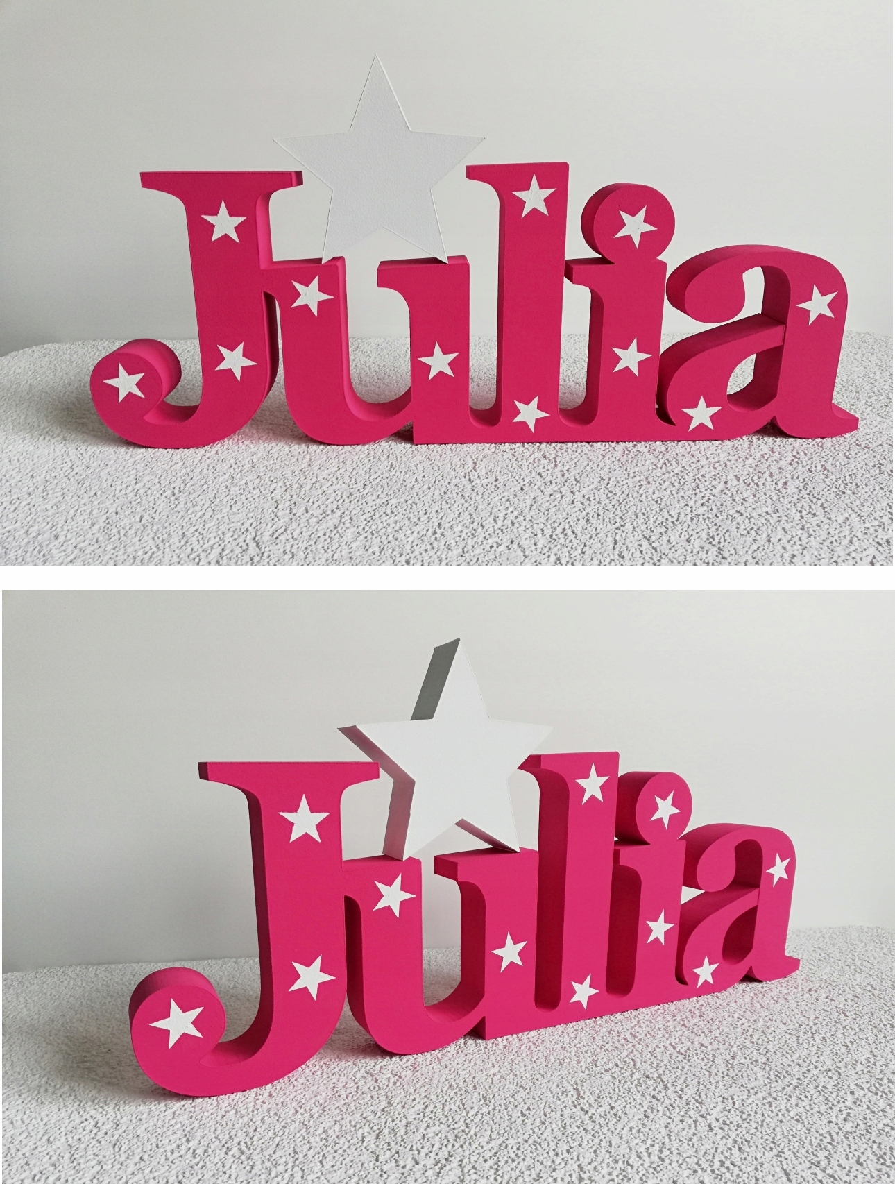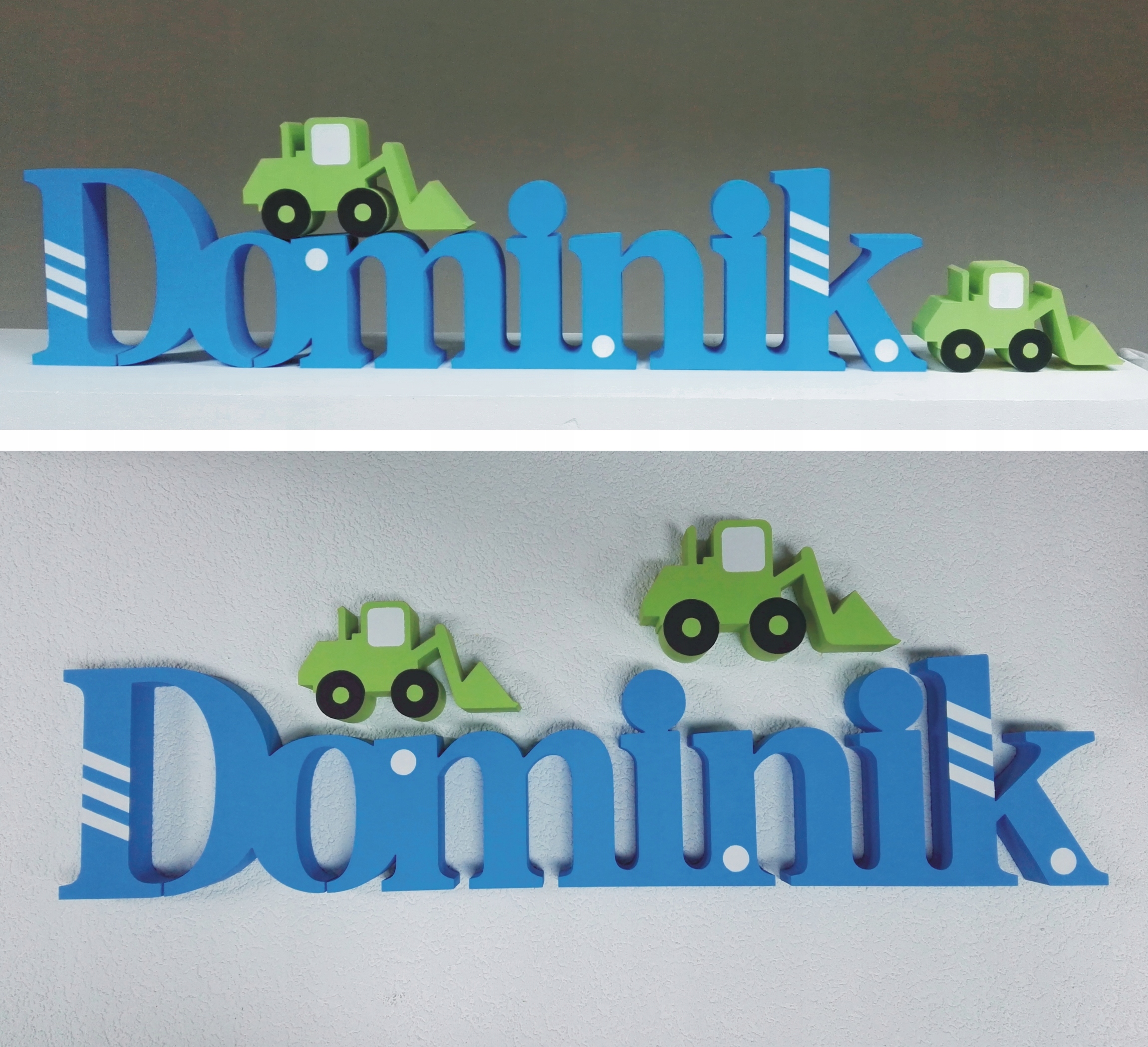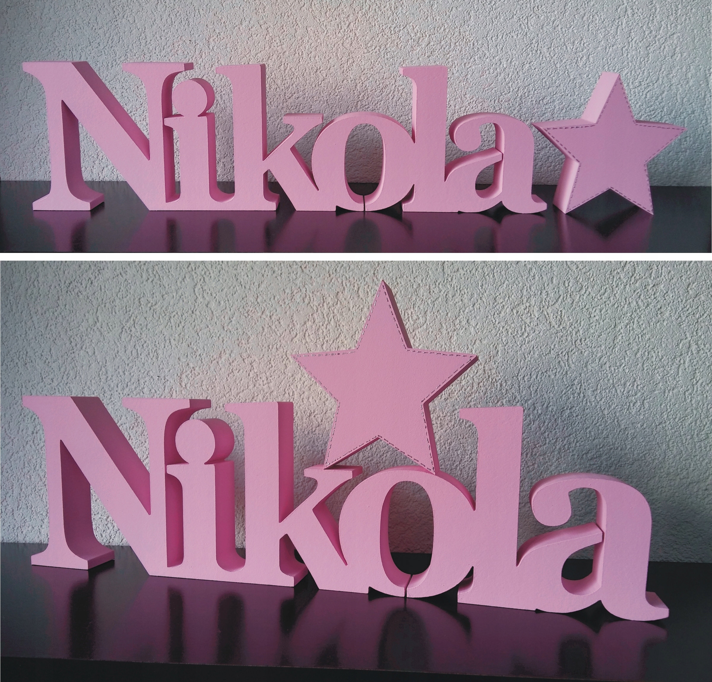 Буквы можно разместить, например, на полке или приклеить к стене с помощью двустороннего пенопластового скотча или монтажного клея из пенополистирола, например. Fixall