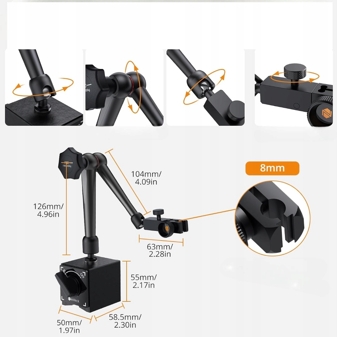 Размеры 2 руки - нижняя рука 11,4 см; Верхняя рука 10 см; Общая высота 35 см. Диаметр отверстия для крепления: 5/16 "(8 мм), используемый для обычного цифрового/щита.