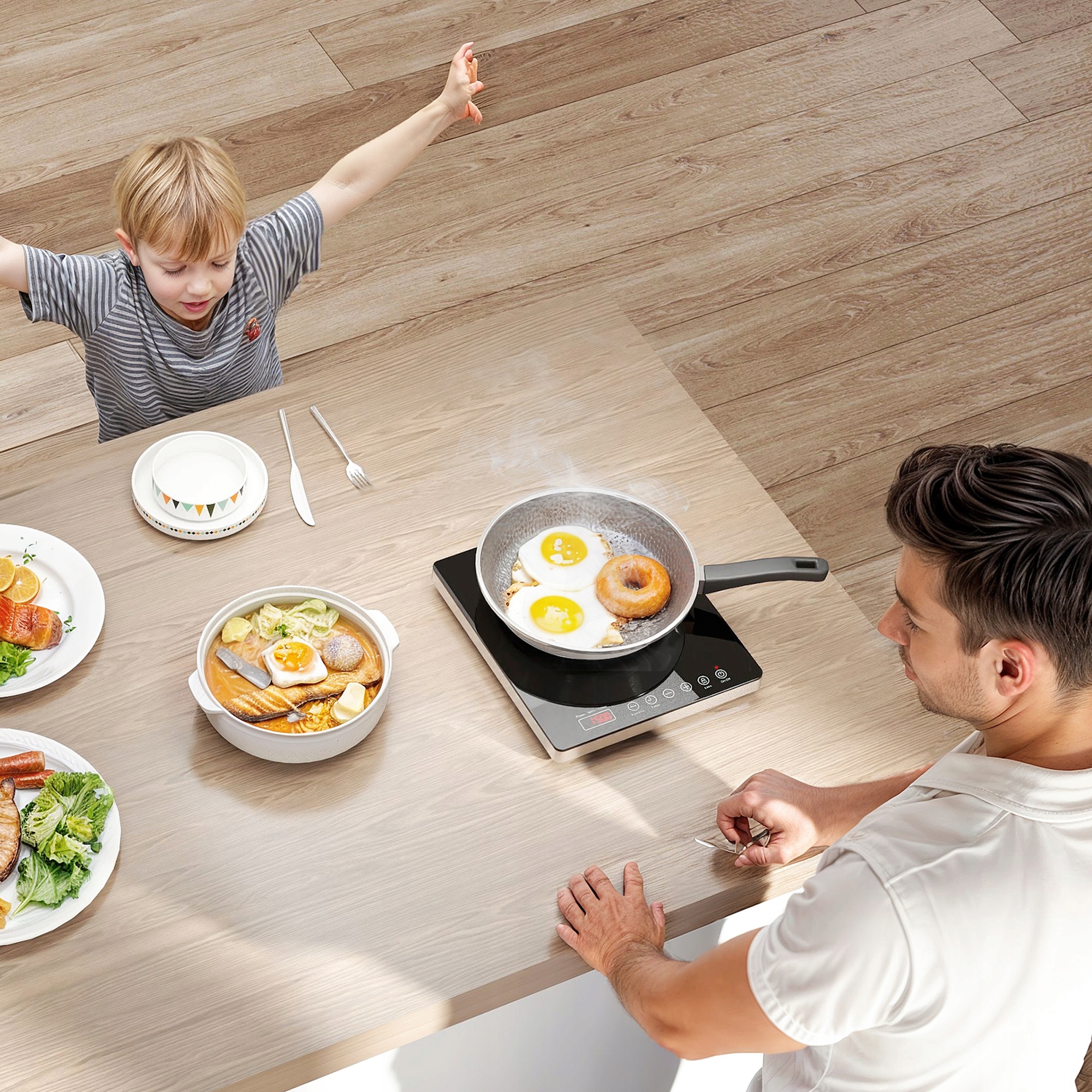 Откройте для себя новое измерение кулинарии с нашей индукционной плитой! По сравнению с традиционными газовыми и электрическими плитами, она предлагает 10 точных настроек температуры и постоянный уровень мощности для достижения идеальных результатов каждый раз. Элегантная сенсорная панель делает управление чрезвычайно простым. Кроме того, функция блокировки от детей повышает безопасность вашего дома. Попрощайтесь с неопределенностью на кухне и наслаждайтесь готовкой, как никогда раньше!