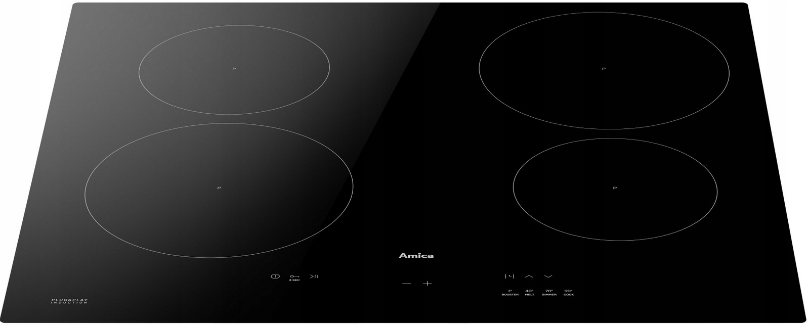 Индукционные варочные панели Amica можно подключать к одно- или трехфазной/любой электросети. Выберите один из пяти уровней мощности и готовьте на всех конфорках одновременно.
