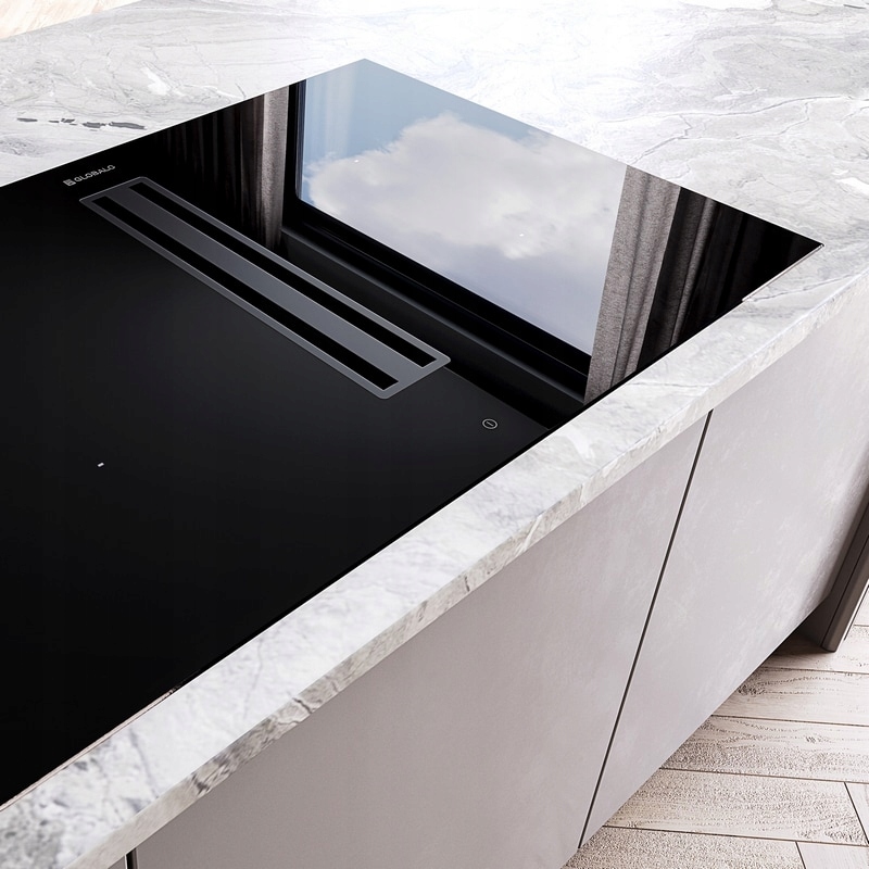 Характерным и главным преимуществом индукционной варочной панели GLOBALO Plantis 80.1 со столешницей является расположение вытяжки в центральной зоне варочной панели. Такое решение обеспечивает комфортное приготовление пищи. Кроме того, такое решение дает возможность установить ящики прямо под варочной панелью.