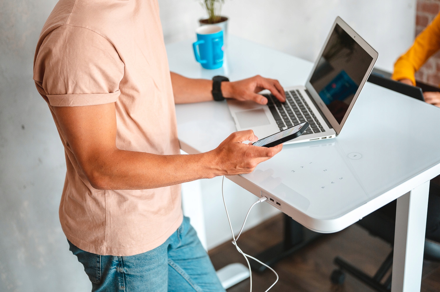 O'Desque оснащен функцией электрической регулировки высоты столешницы. Вы можете в любой момент поднять рабочий стол, чтобы работать стоя, а когда захотите вернуться в «классическое» положение, вы можете опустить рабочий стол одной кнопкой.