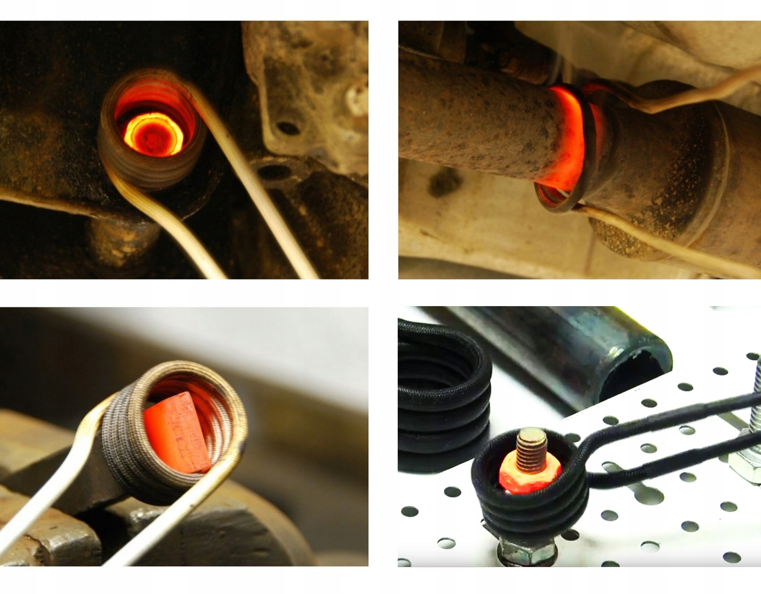 - Детали, требующие нагрева: винты, стержни, профили, листы, подшипники, корпуса, приводные валы, шарниры, гайки, трубы, шестерни, посадки подшипников, лямбда щупы, детали и элементы машин и транспортных средств, выхлопные системы, шкивы, зажимы и т.п.