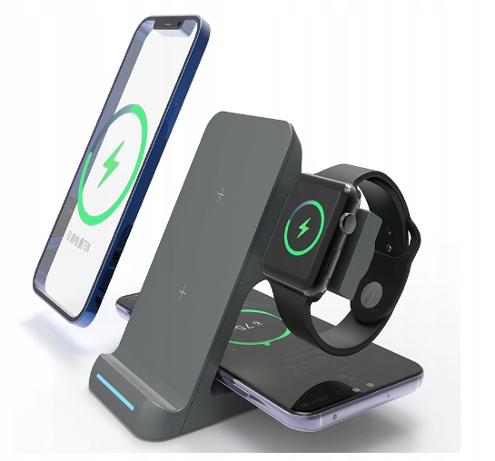 - Зарядное устройство 3-в-1: заряжайте смартфон, умные часы и беспроводные наушники в различных конфигурациях одновременно.